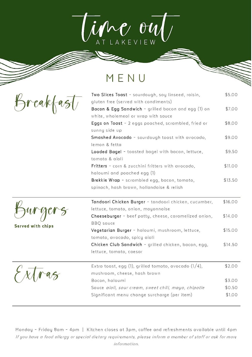 Welcome to 'Time Out at Lakeview' Cafe, your ultimate dining destination at 17 Solent Cct, Norwest, NSW. Renowned for its breathtaking views of the lake, this cafe offers a delightful menu designed to please every palate.
